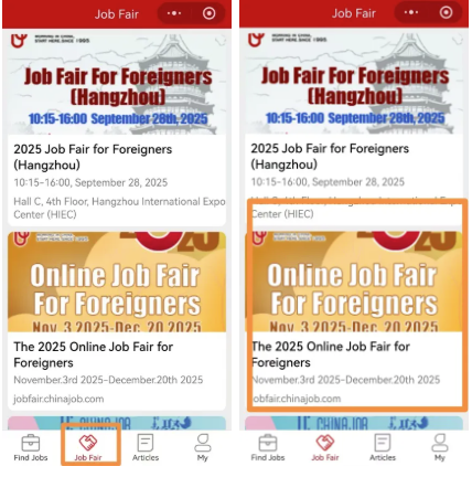 Enter the Job Fair Mini Apps, click "Job Fair" and choose the event you prefer.