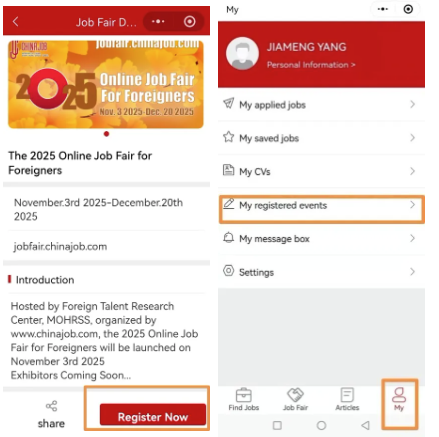 Click "Register Now", then you may check the events you’ve registered in "My" center.